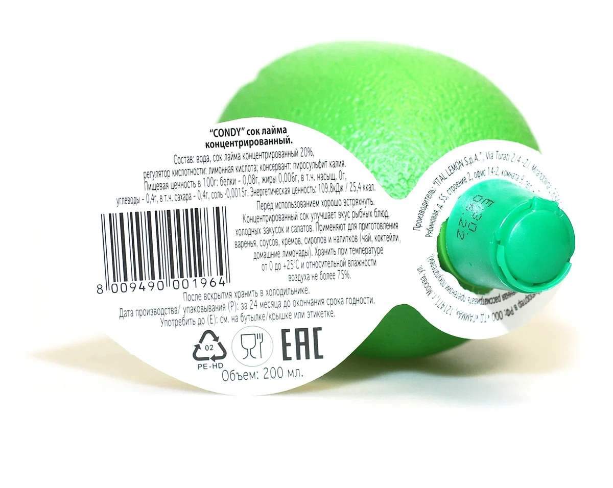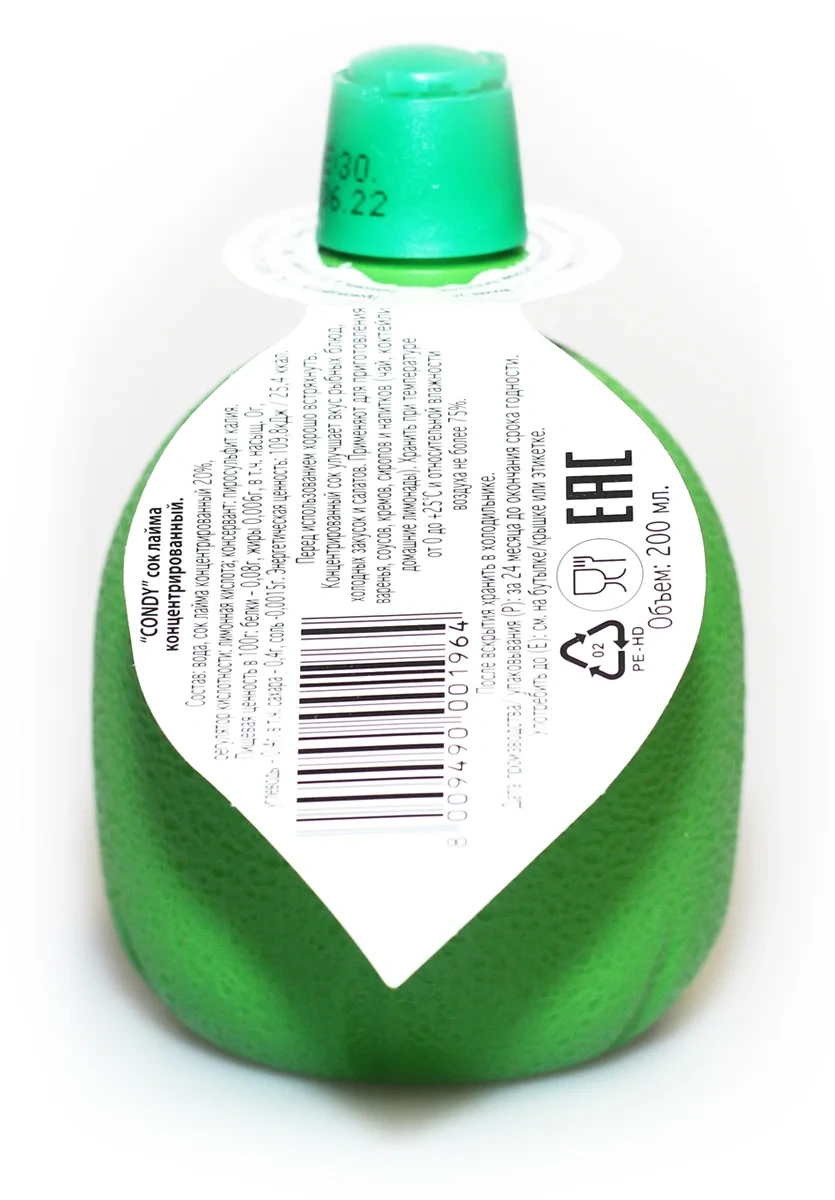 Сок лайма Condy концентрированный, 200мл концентрированный лаймовый сок, изготовленный из отборных цитрусовых. Он обладает интенсивным ароматом и вкусом, который станет уместным во многих блюдах и напитках. Обладает отличным освежающим эффектом и подходит для приготовления летних напитков.