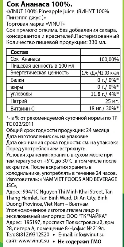 На 100 мл (средние значения): углеводы - 13.5 г. Энергетическая ценность на 100 г продукта - 54 ккал.