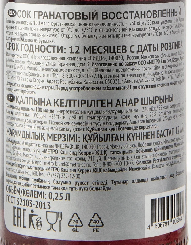 О пользе гранатового сока известно еще со времен Гиппократа. Этот напиток – кладезь множества витаминов и элементов, необходимых организму человека. Перечислять его достоинства можно бесконечно: он легко усваивается организмом, выводит шлаки и токсины, улучшает обменные процессы, замедляет старение организма и кожи, укрепляет иммунитет и многое другое. Сок RIOBA Гранатовый, 0,25 мл изготовлен только из самых отборных гранатов. Он не содержит ненатуральных добавок, красителей, консервантов, и самым благотворным образом влияет на организм.