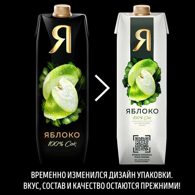 Я – сочное яблоко. В 100% осветленном яблочном соке Я в большом формате объединена терпкость и кислинка спелого яблока. Яркий 100% яблочный сок Я – это вкус, которым хочется наслаждаться наедине с собой. Я и больше никого.