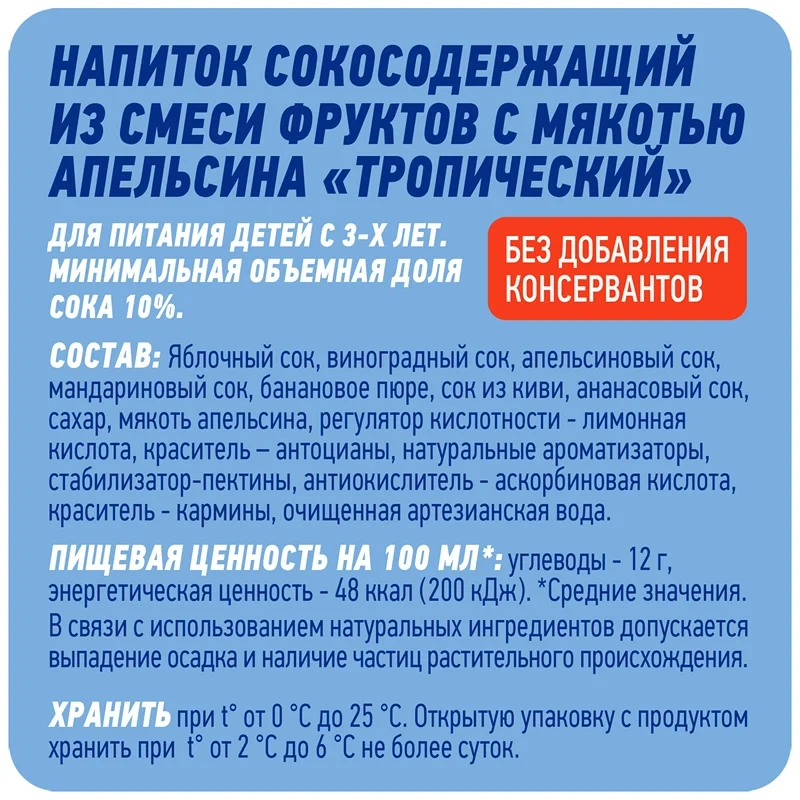 Для питания детей дошкольного и школьного возраста (от трех лет и старше).Описание продуктаНектар с ...