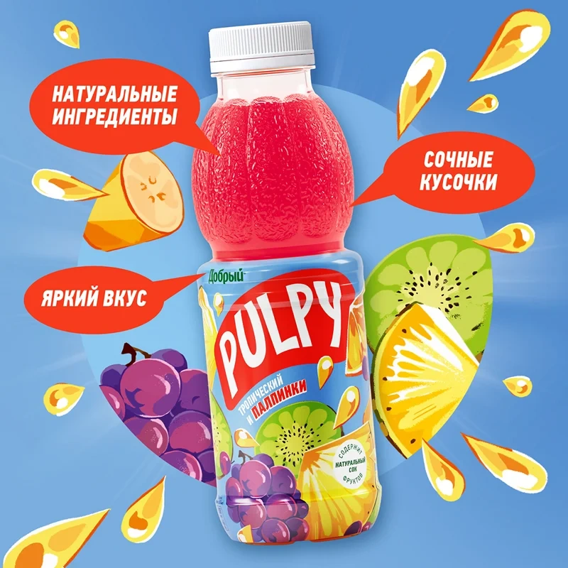 Сокосодержащий напиток Добрый Pulpy тропический с мякотью, 450мл