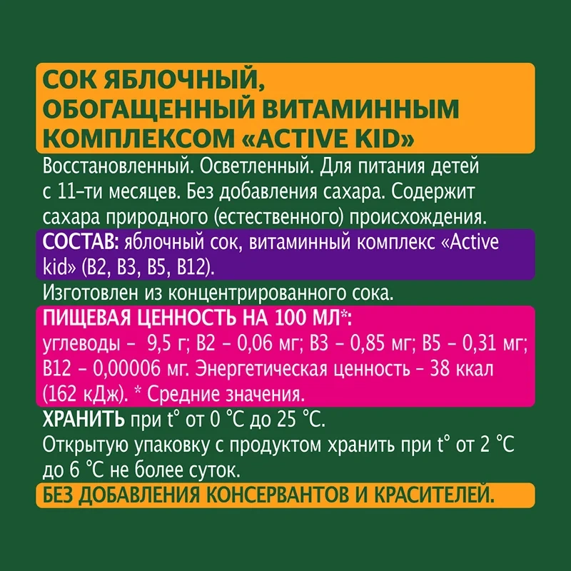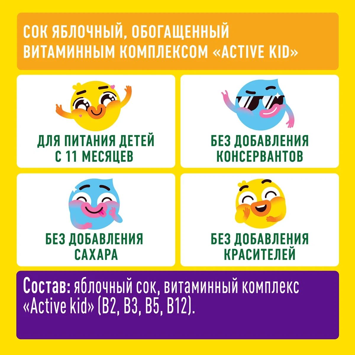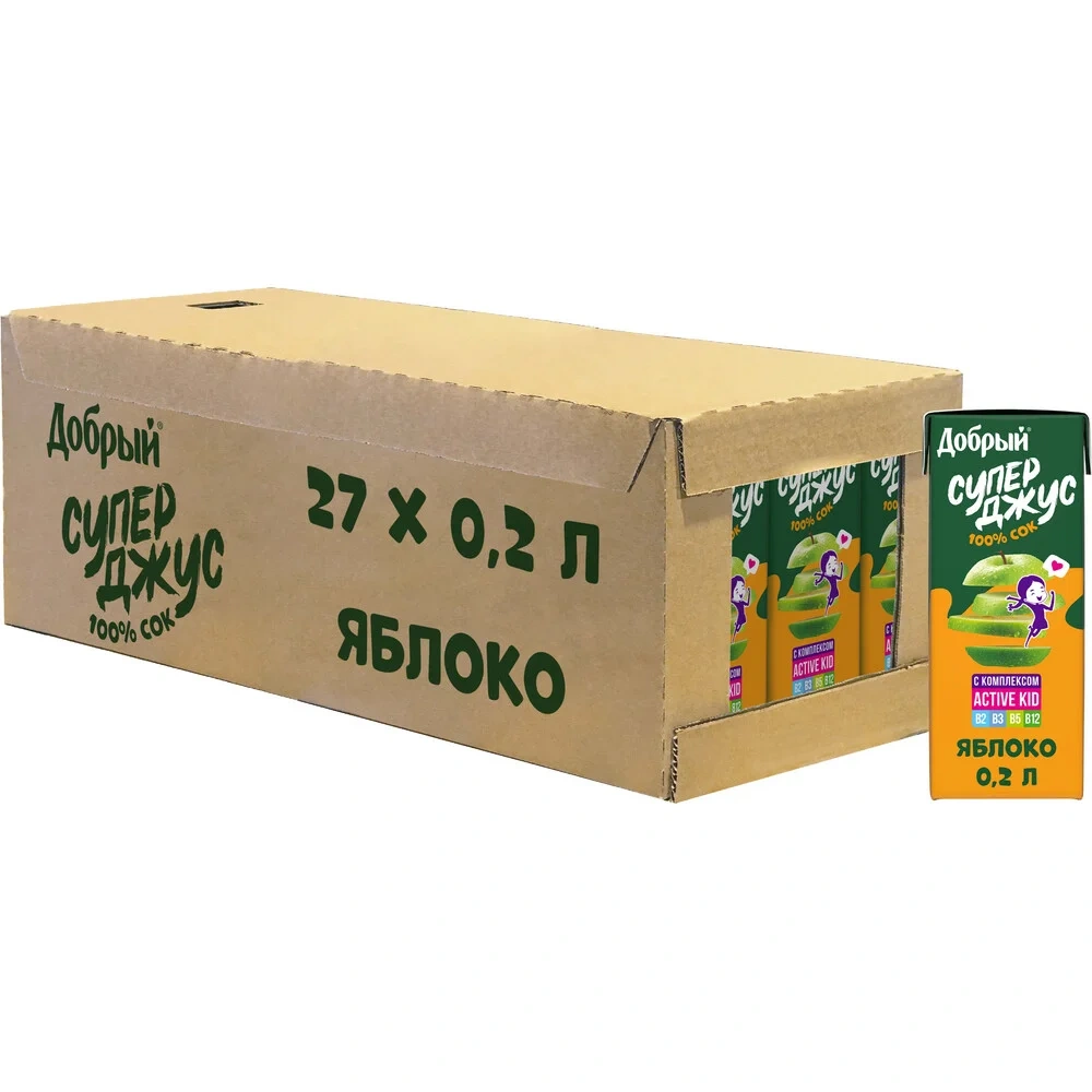 Польза и вкус спелых яблок в 100% соке для детей Добрый Супер Джус. В продукте отсутствуют добавленн...