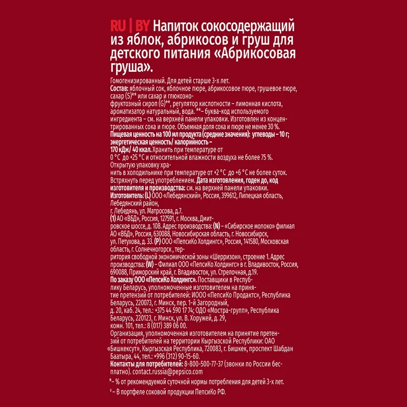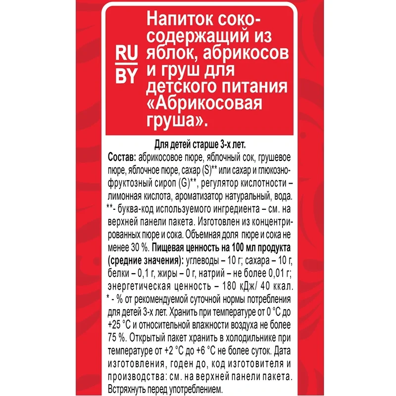 Сок Любимый яблоко-абрикос-груша, 950мл