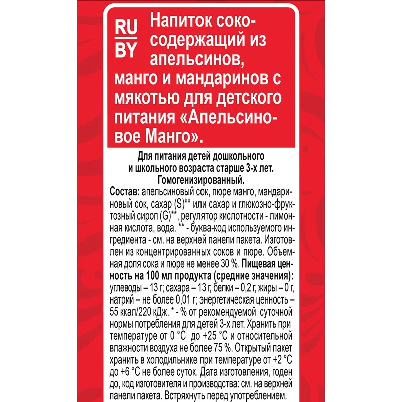 Сок Любимый Апельсин-манго, 1.93л