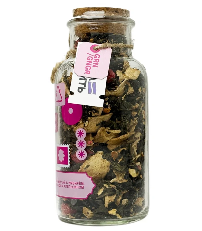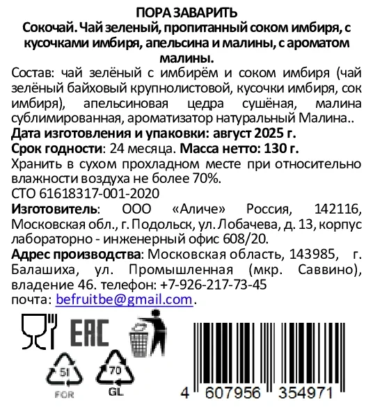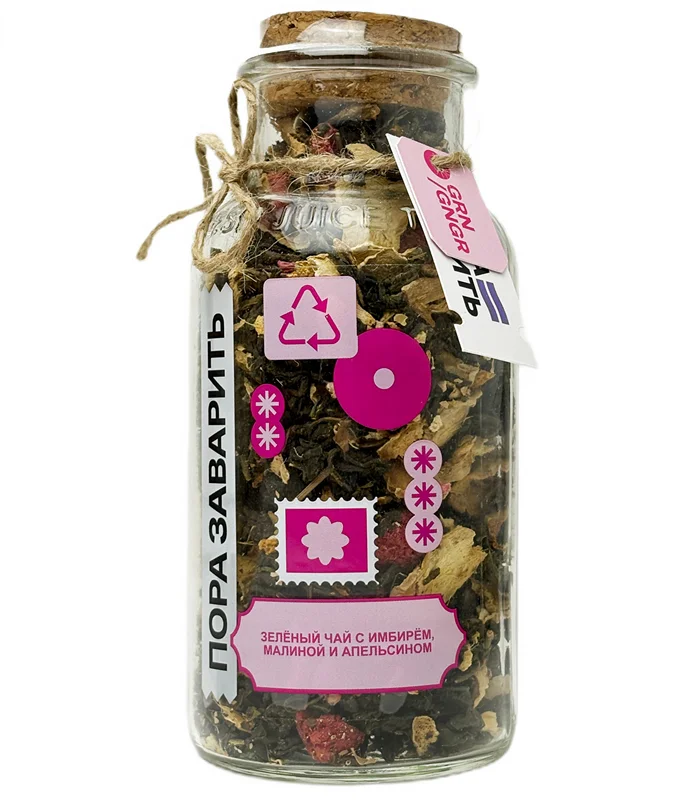 Сокочай зеленый Пора заварить имбирь, малина и апельсин, 130г