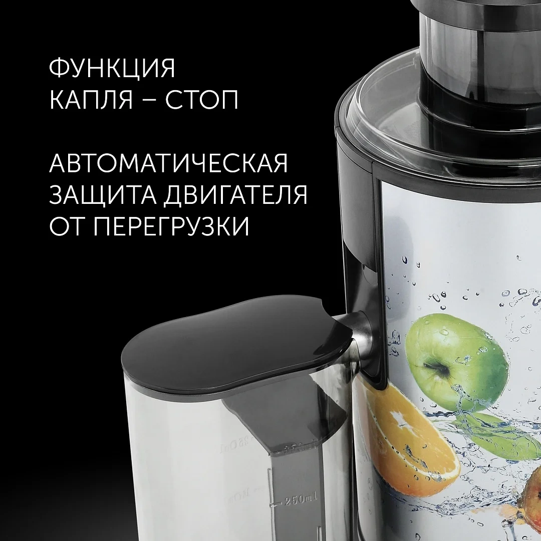 - Функция 'капля-стоп' и автоматический выброс мякоти.