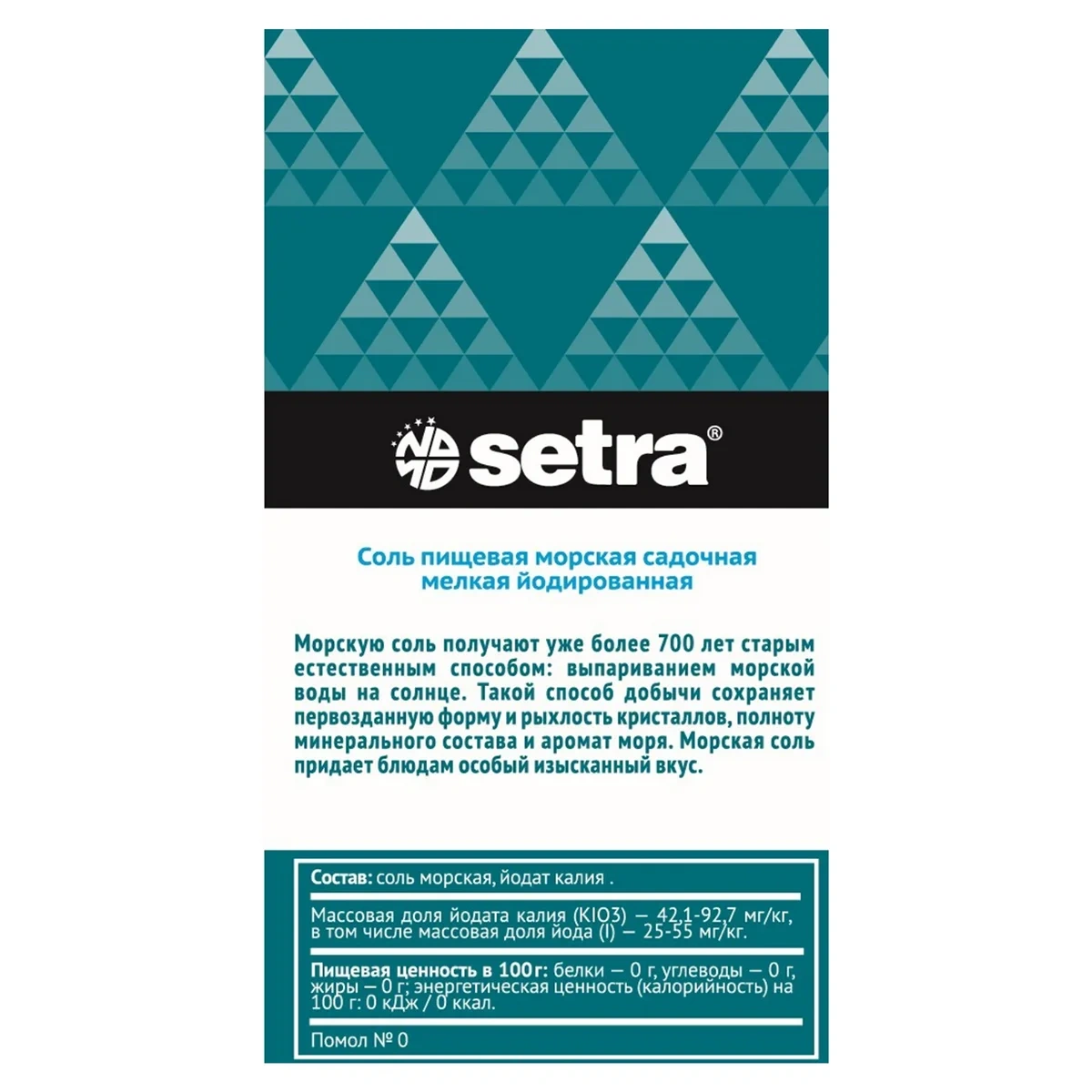 Соль морская Setra пищевая мелкая йодированная, 250г