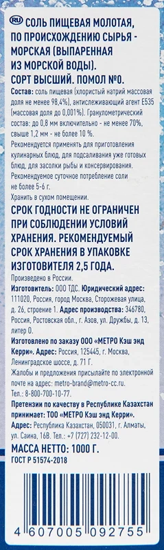 Соль Metro Chef морская, мелкая, 1кг