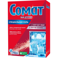 Соль для посудомоечных машин Сомат 1.5 кг Назначение: для ухода за посудомоечной машиной. Защищает от образования известкового налета; смягчает воду; повышает эффективность работы посудомоечной машины; предотвращает появление разводов; продлевает срок службы машины. Способ применения: заполните отделение для соли, руководствуясь инструкцией к посудомоечной машине. Машина дозирует необходимое количество соли автоматически. Полезный совет: если в Вашей посудомоечной машине отсутствует индикатор соли, рекомендуется наполнять отделение для соли не реже одного раза в месяц. Меры предосторожности: хранить в недоступном для детей месте. Перед применением ознакомиться с инструкцией по применению. Состав: 100% хлористый натрий. Условия хранения: хранить в сухом месте при температуре от +5°С до +40°С Срок годности:36 месяце с даты изготовления.