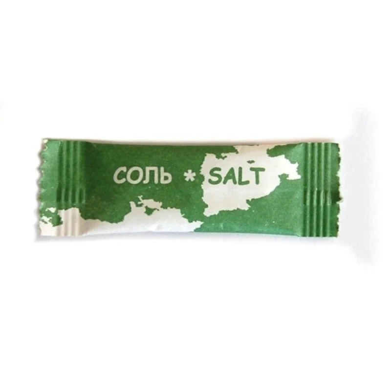 Соль «Материк» пищевая поваренная расфасована по 1 грамму в порционные бумажные стики, позволяющие аккуратно дозировать продукт для употребления.