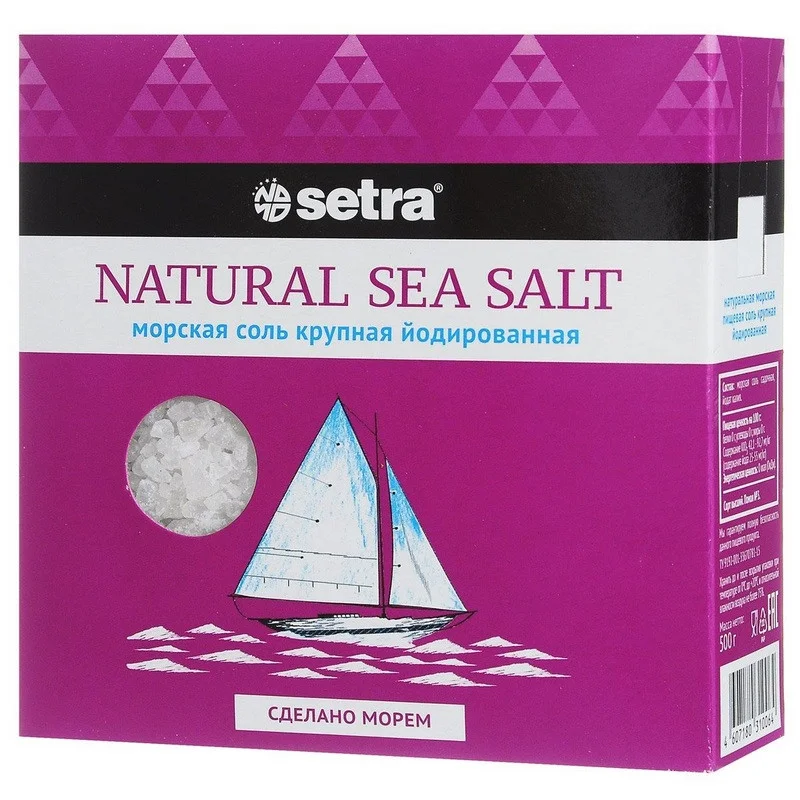 Соль Setra морская натуральная крупная йодированная 500гр