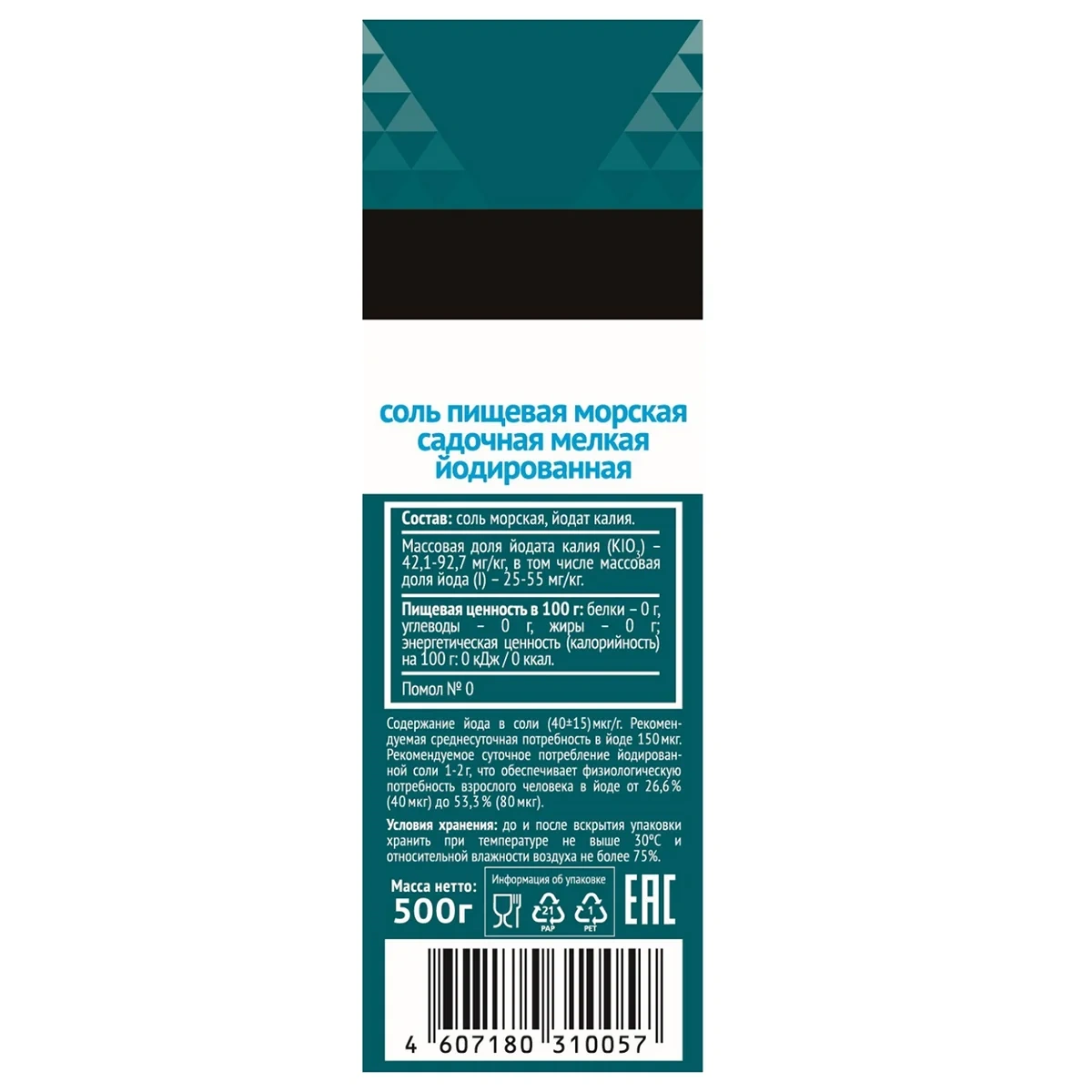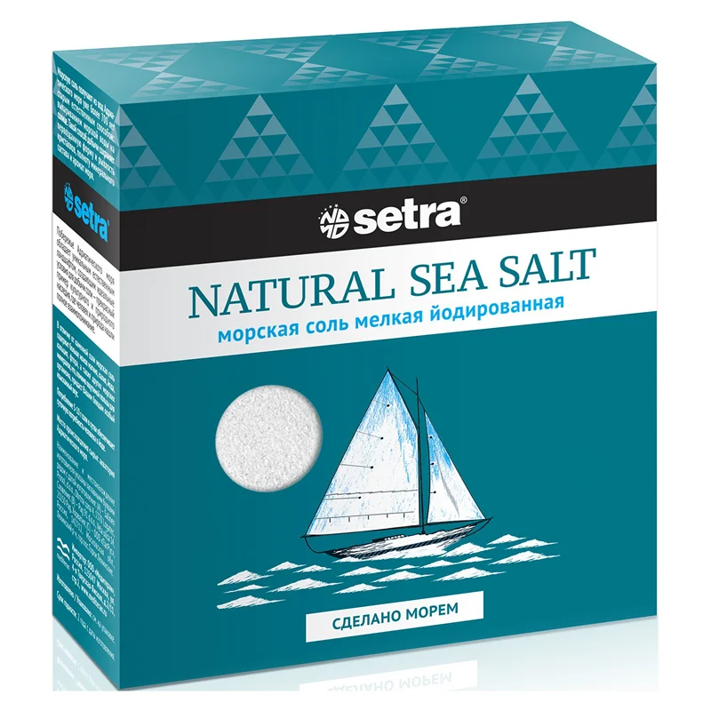 Соль морская Setra пищевая мелкая йодированная, 500г
