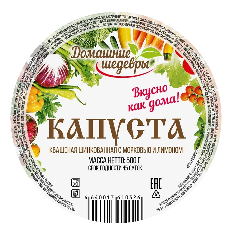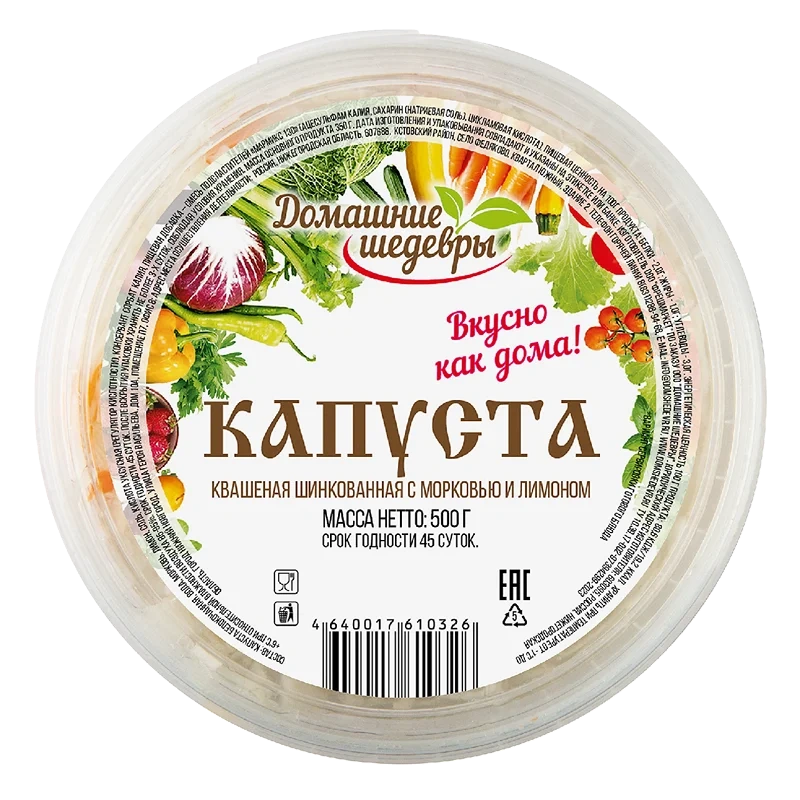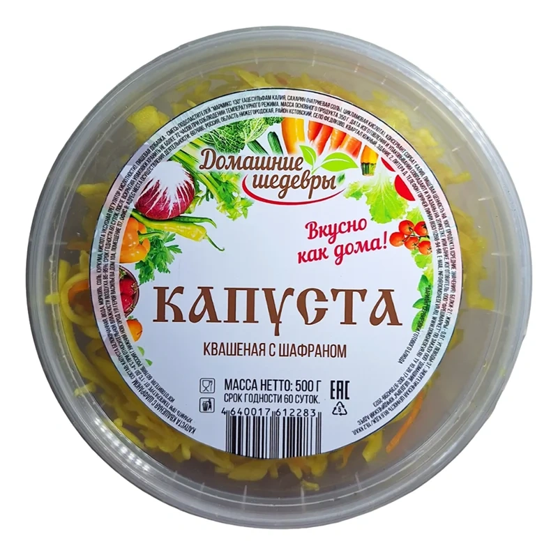 Капуста квашенная ТМ Домашние шедевры с шафраном шинкованная, 500г