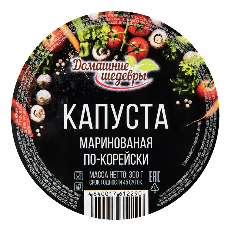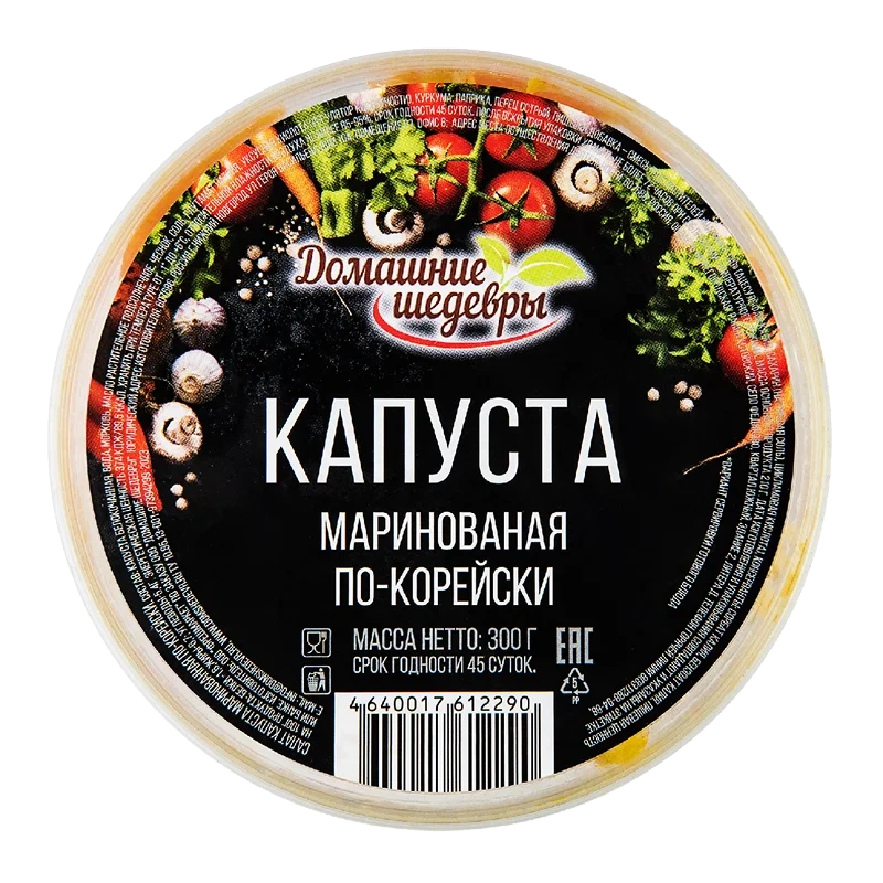 Капуста маринованная по-корейски ТМ Домашние шедевры нарезанная, 300г