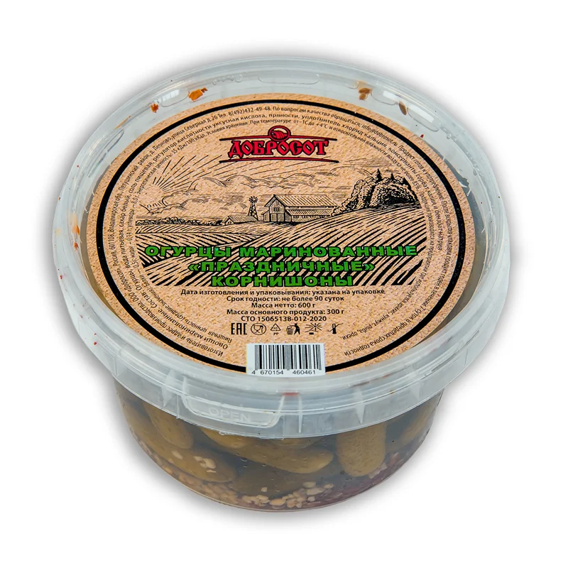 Огурцы Добросот маринованные праздничные корнишоны, 600г