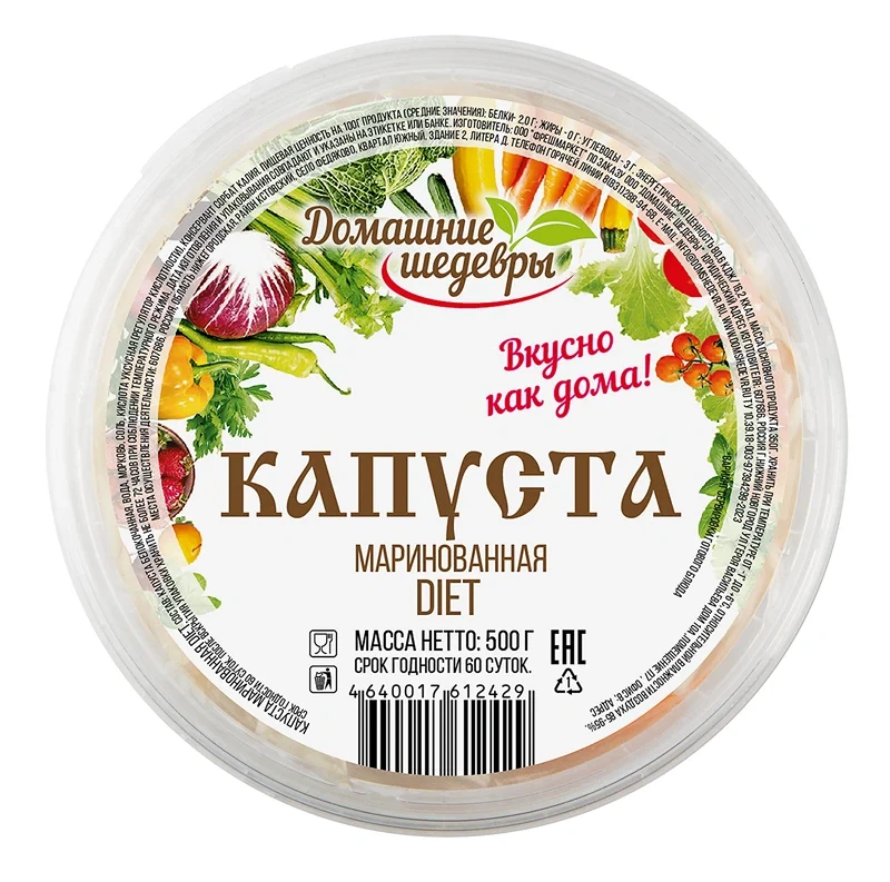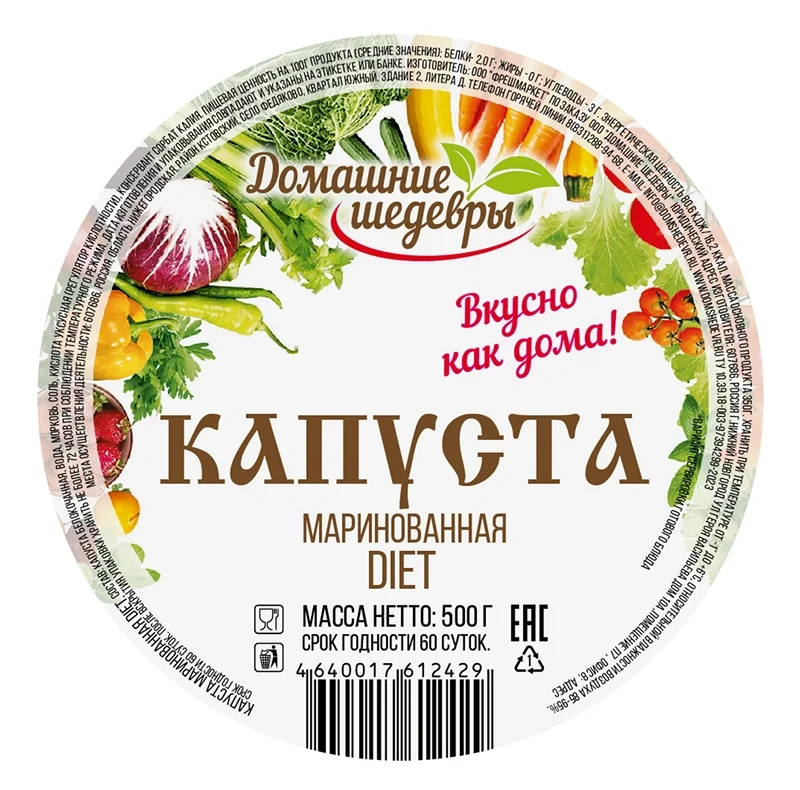 Капуста маринованная ТМ Домашние шедевры Diet, 500г
