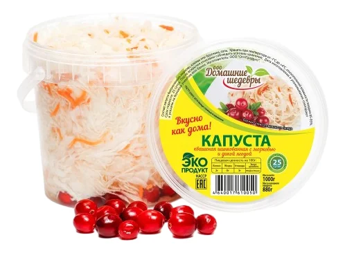Капуста квашенная ТМ Домашние шедевры с клюквой шинкованная, 500г