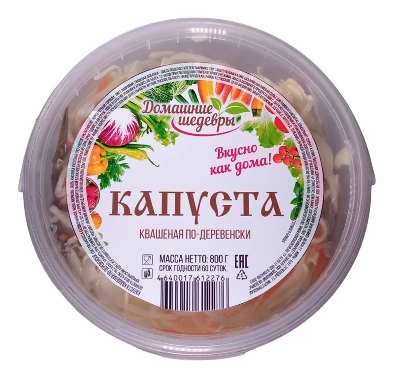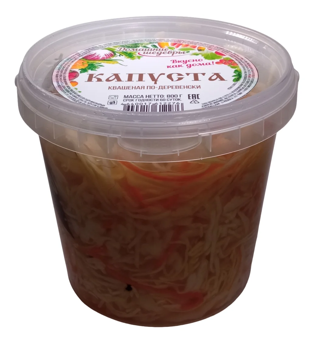 Капуста квашенная по-деревенски ТМ Домашние шедевры шинкованная, 800г