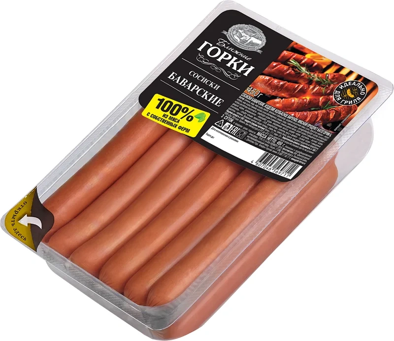 Изготовлены из отборного мяса с собственной фермы. Производятся из свинины и говядины, дополненных ароматными пряностями. Длинные и тонкие, с легким ароматом копчения. Продукт изготовлен из натурального мяса с добавлением специального букета приправ. В составе сосисок имеется полный набор водорастворимых (В1, В2, РР, В6) и жирорастворимых (А, D, Е) витаминов, регулирующих рост и физиологические процессы. Из макроэлементов присутствует кальций, магний, натрий, калий, фосфор; из микроэлементов – йод, железо. Их можно подавать как угощение на мероприятиях, готовить на гриле или варить в качестве основного или второго блюда. Сосиски можно готовить на завтрак каждый день, брать в школу для перекусов или использовать для приготовления выпечки.