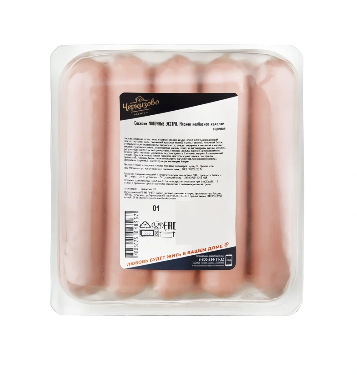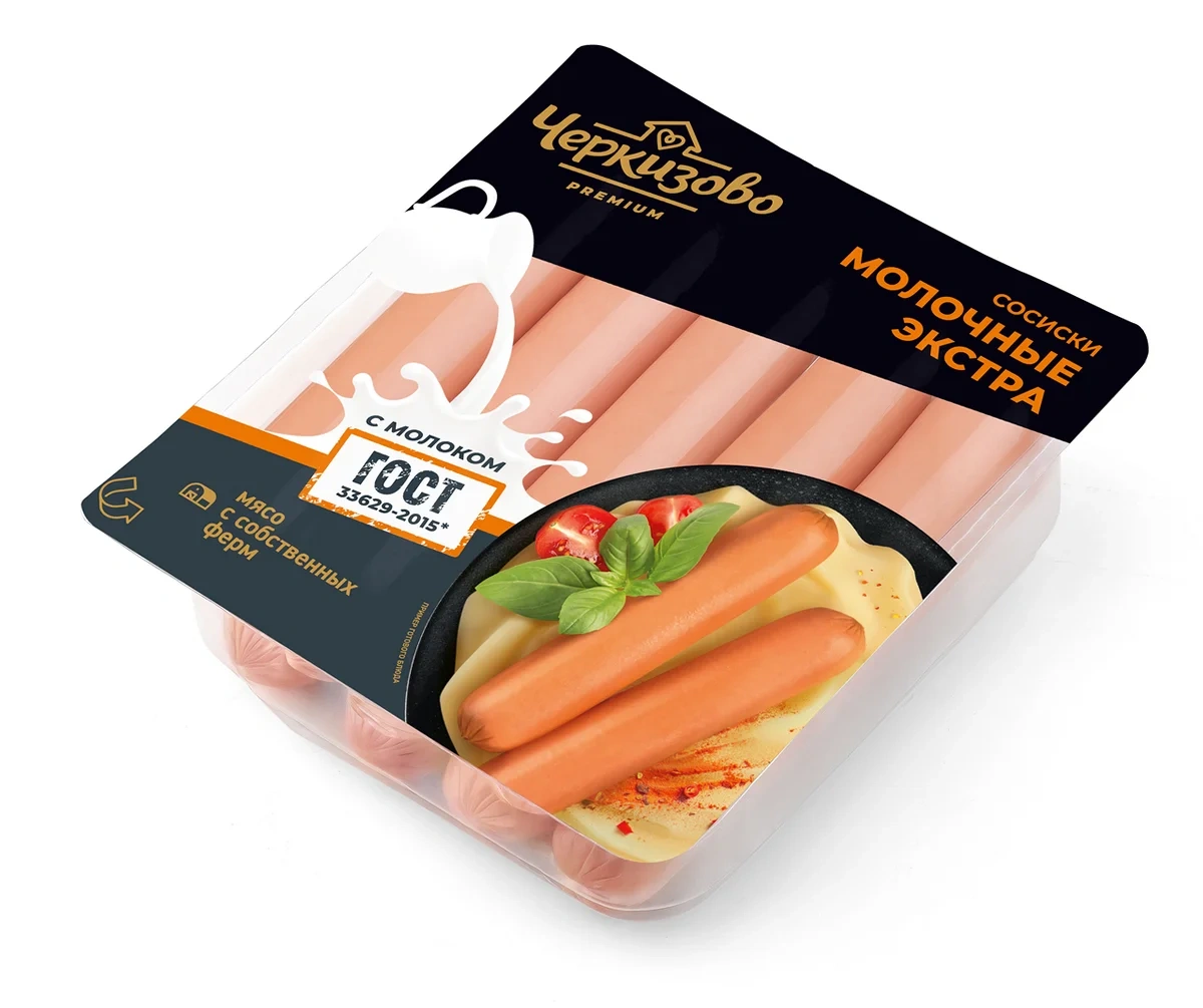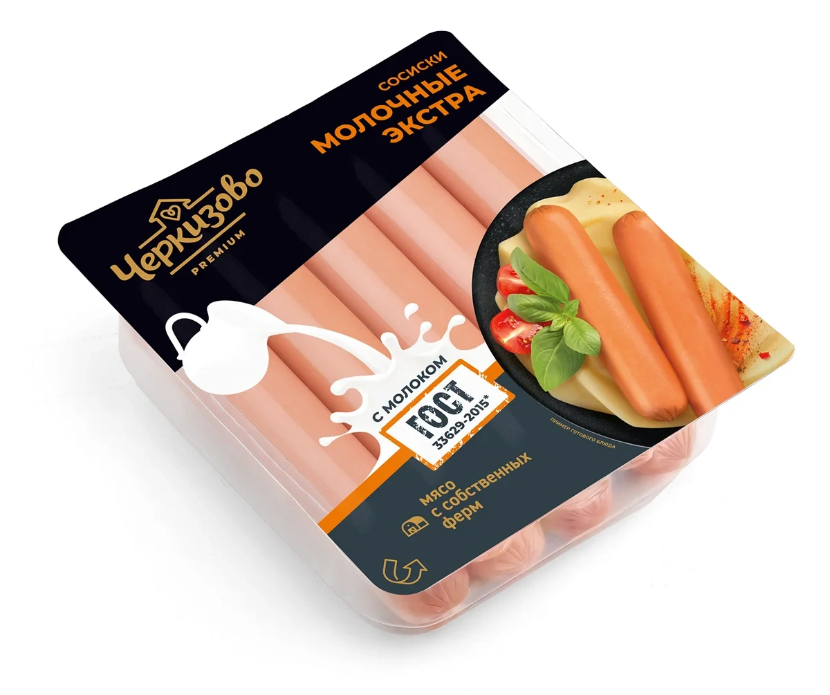 Сосиски производятся по оригинальной рецептуре от нашего шеф-технолога с добавлением молока. Только отборное мясо с собственных ферм, никаких ГМО, сои, искусственных красителей. Добавление молока придает сосискам нежный вкус и тонкое молочное послевкусие, и благодаря отсутствию острых специй сосиски подходят для употребления всей семьей.
