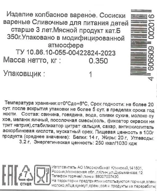 | Стандарт производства | ту 10.85.10-055-00422824-2023 |