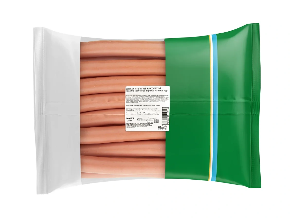Сосиски Мясная губерния аппетитные классические вареные, ~1.25кг