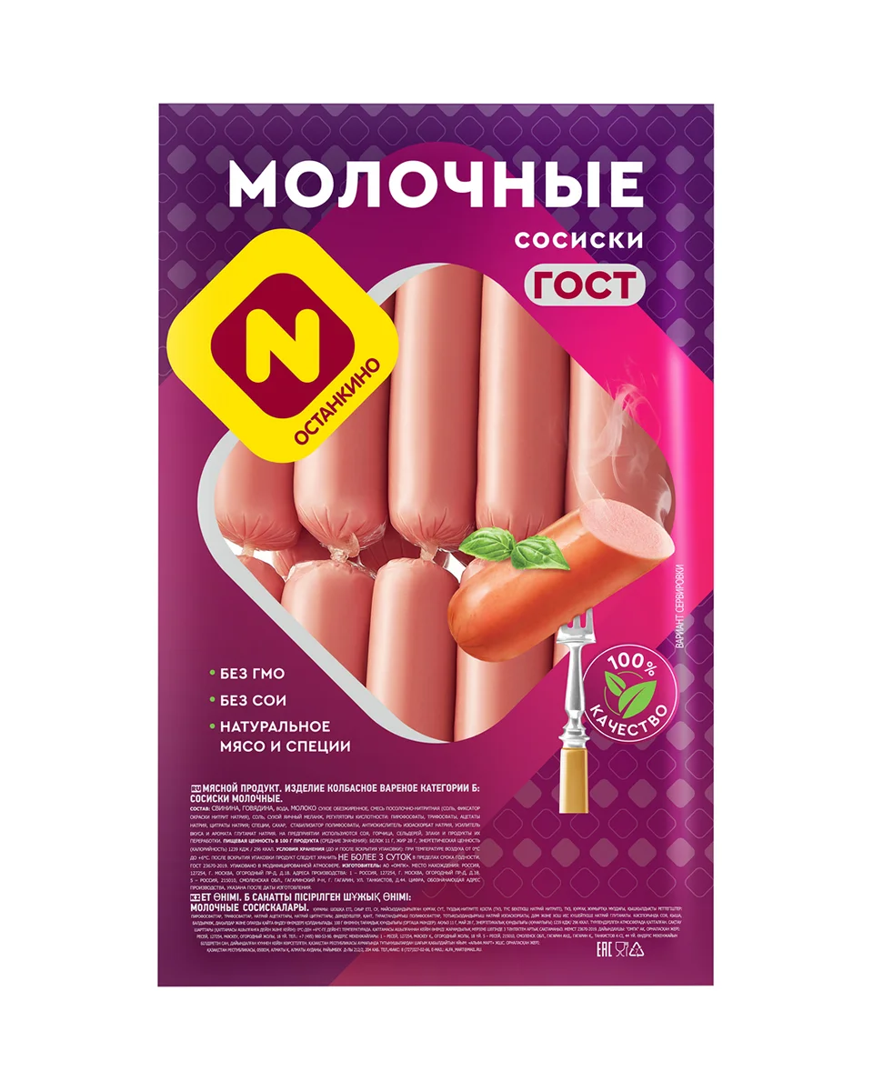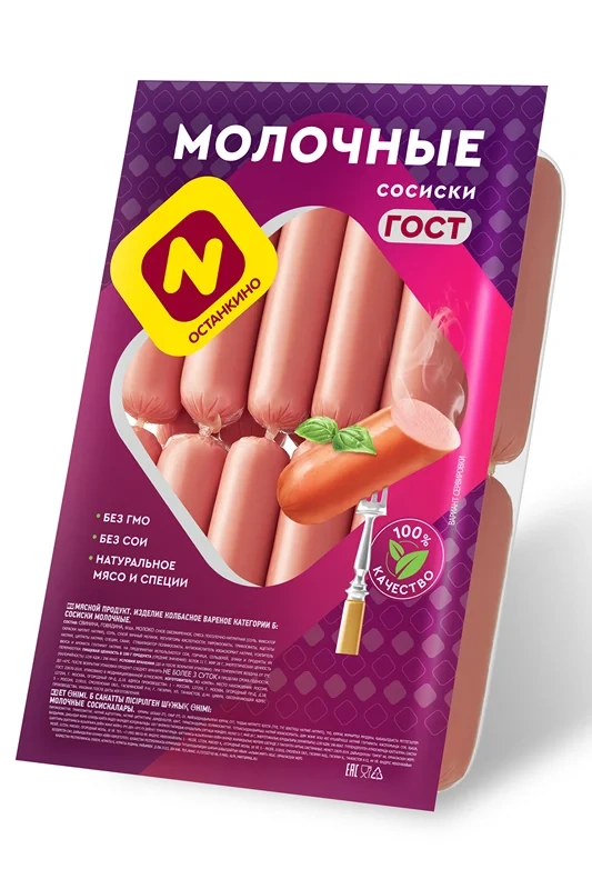 Производятся по традиционному рецепту из охлажденной говядины, свинины и диетического филе куриных грудок с добавлением молока и пряностей. Имеют нежный молочный вкус. Аппетитный аромат обеспечивают пряности, в том числе мускатный орех, а также копчение на натуральных буковых опилках. Отварите сосиски в кипящей воде, обжарьте на сковороде или приготовьте на углях, подавайте с любым гарниром - Молочные универсальный продукт, который никого не оставит равнодушным, тем более голодным.
