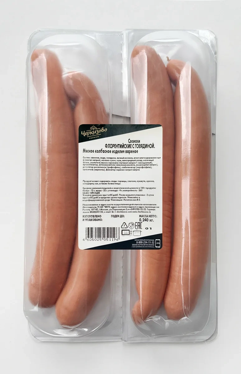 Сосиски с говядиной Черкизово флорентийские вареные, 240г