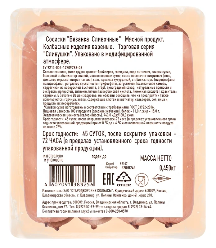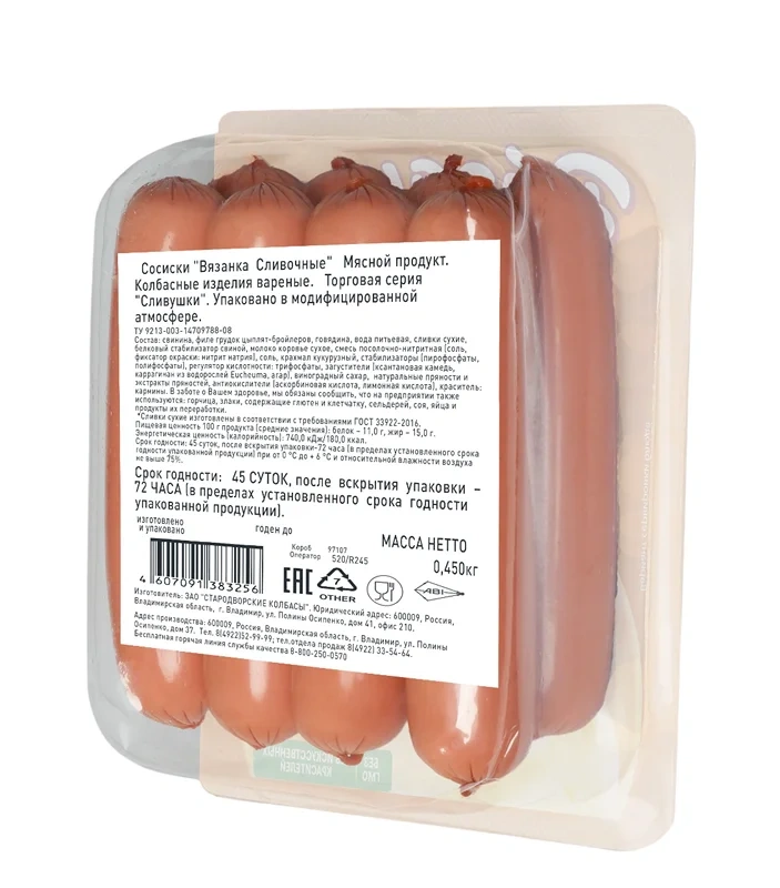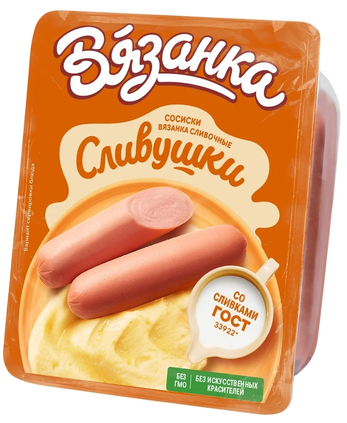 Сосиски без жгучих специй, в них волшебно связаны сливки и натуральное мясо, поэтому Сливушки такие нежные! Особенно понравятся детям! Мамы и их дети обожают сосиски Сливушки от Вязанки! В их составе натуральное качественное мясо, нежнейшие сливки и сбалансированный букет легких пряностей, в котором отсутствуют жгучие специи. Сосиски Сливушки с нежнейшей текстурой и нежным сливочным вкусом отлично подойдут детям, чтобы подкрепиться и полакомиться. Позволяют мамам вкусно, быстро и полезно накормить своих детей.