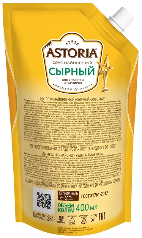 Соус Astoria Сырный, 384г
