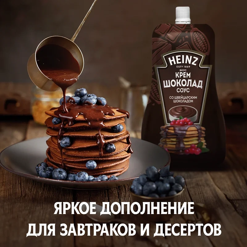 Сладкий соус Heinz Крем Шоколад приготовлен шеф-поварами Heinz специально для вас, чтобы вы могли сделать необычным самое простое блюдо. Соус Крем Шоколад с добавлением настоящего швейцарского шоколада создан для истинных ценителей изысканного вкуса. Кремовая сбалансированная текстура в сочетании с насыщенным шоколадным вкусом создает идеальное сочетание для десертов и выпечки. - Насыщенный шоколадный вкус.- Кремовая сбалансированная текстура.- Без красителей и ГМО.- Яркое дополнение для ароматной выпечки.- Попробуйте соус с блинчиками, десертами и мороженым.Сладкий соус Heinz Крем Шоколад - яркое дополнение к вашей ароматной выпечке. Он прекрасно сочетается с блинчиками, десертами и мороженым, превращая обычные блюда в настоящие произведения искусства.