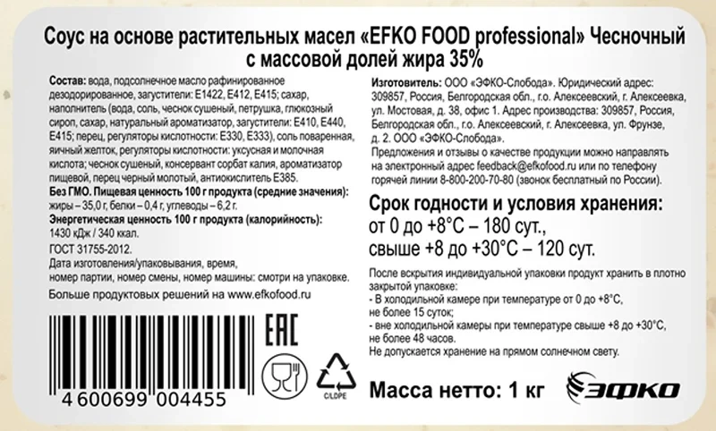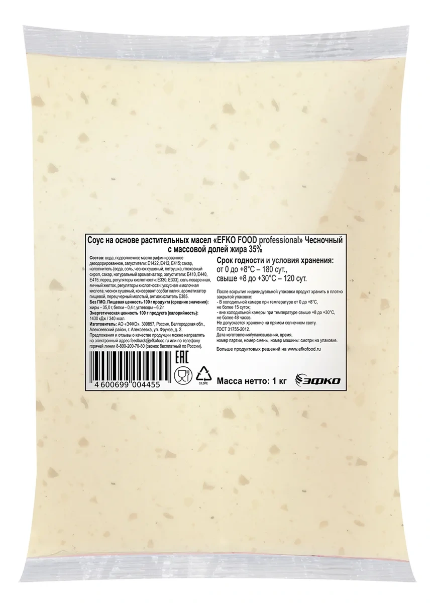 Соус Efko Food Professional чесночный ГОСТ 35%, 1кг