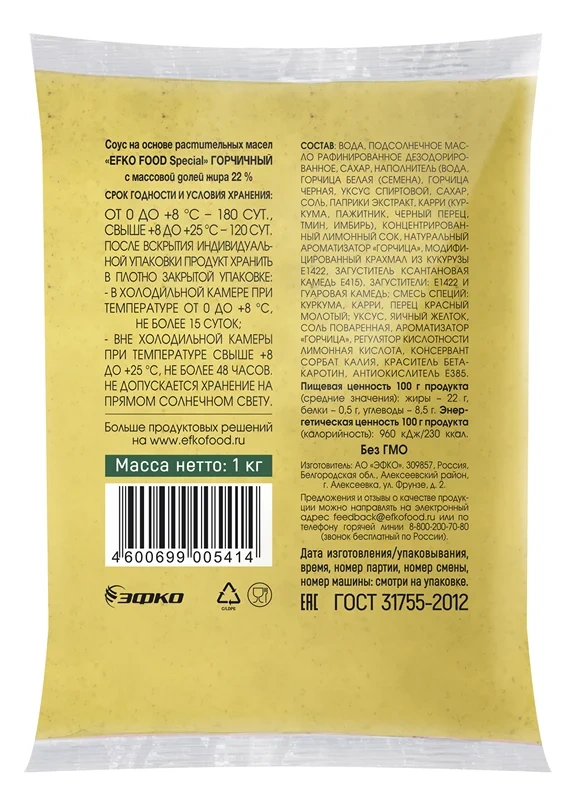 Соус Efko Food Special горчичный ГОСТ 22%, 1кг