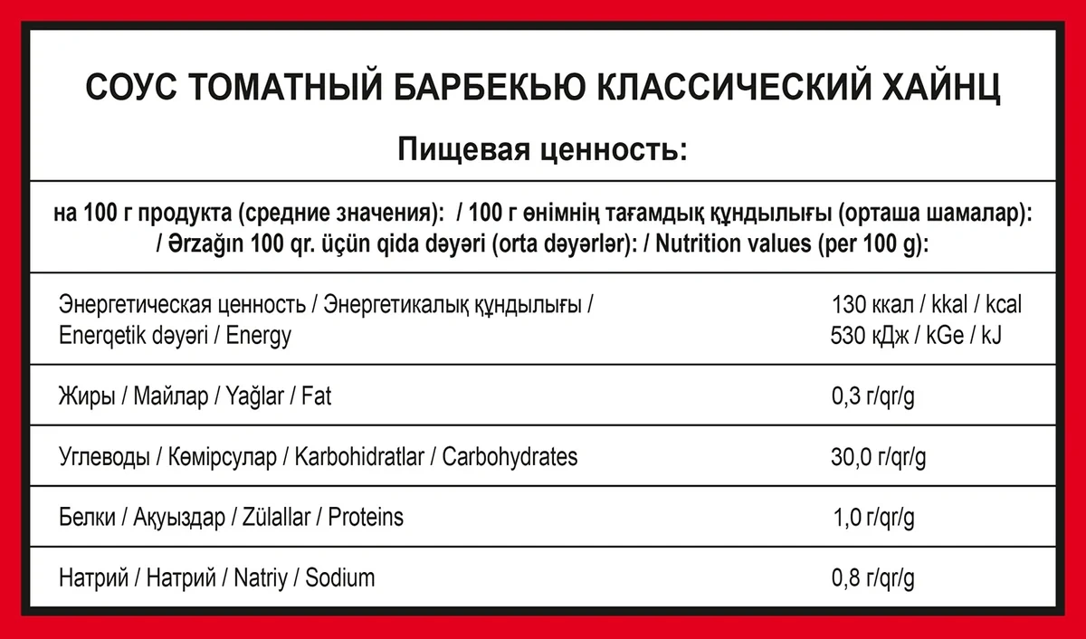 Соус Heinz Барбекю, 1 кг порадует своим вкусом ценителей мясных блюд с ароматом открытого огня. Любое мясо с его добавлением будет напоминать приготовленное на мангале или гриле: шашлык, куриные крылышки, стейки. Это один из наиболее популярных соусов в мире, тонкий вкус и аромат которого раскрываются в каждой капле. Легкую остроту вкусу придают специи. Также соус подойдет для использования при приготовлении гамбургеров, оттенит вкус спагетти, печеного картофеля и иных гарниров. Большой упаковки хватит на длительное время.