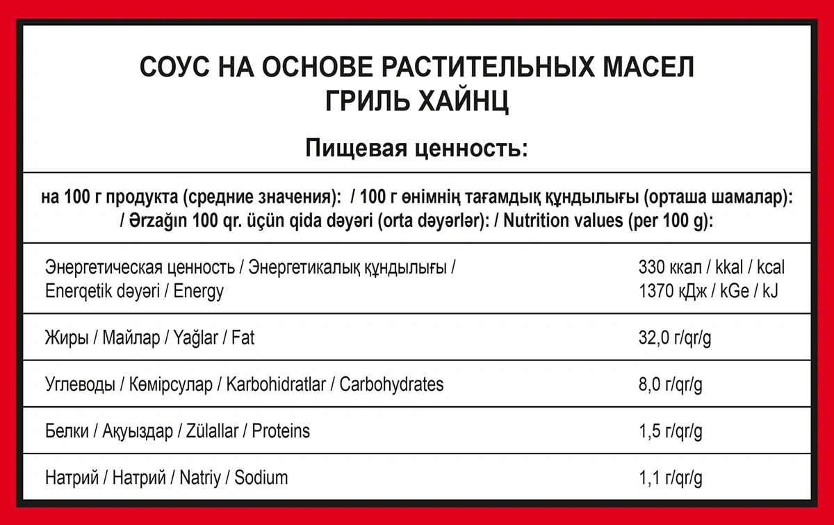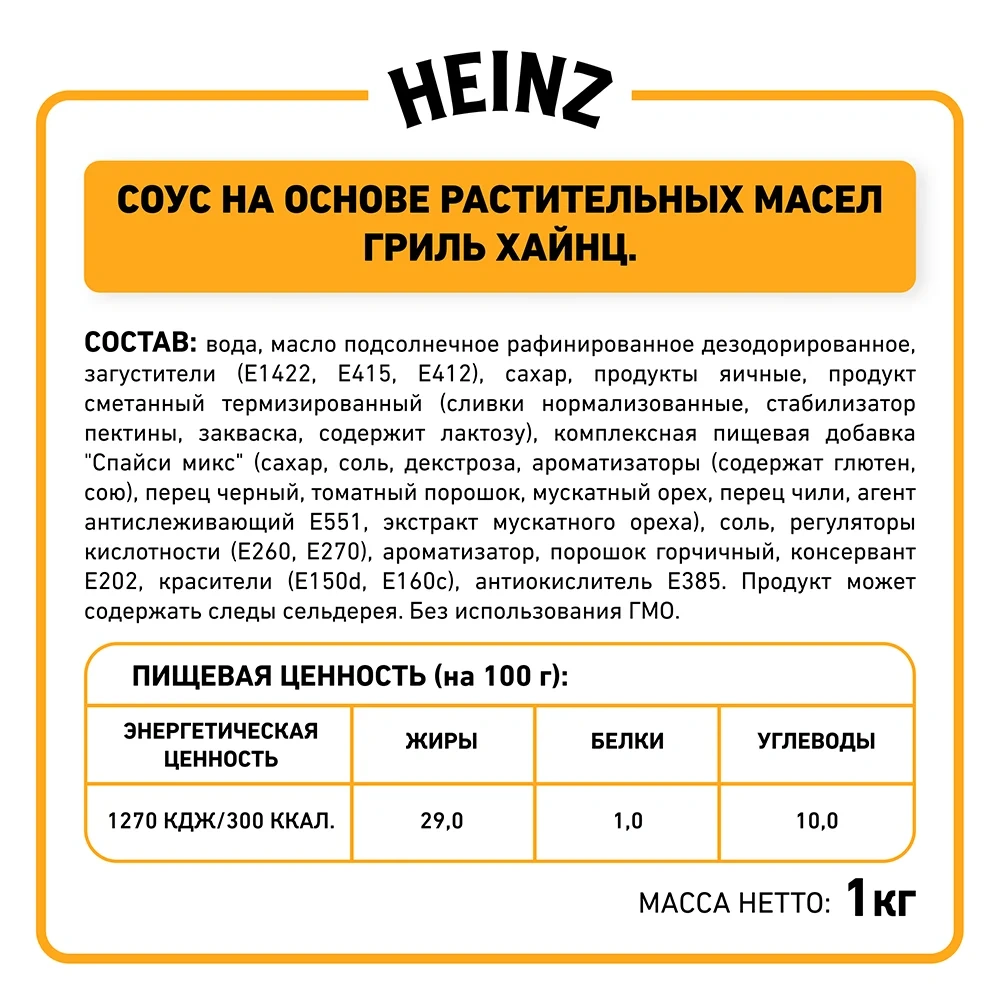 Легендарный Гриль соус от Хайнц теперь доступен всем! Феерично раскрывает вкус мяса, придавая ему неповторимый глубокий аромат жареного мяса. Соус можно использовать в качестве ингредиента в гамбургерах и других блюдах, а также как маринад и дип соус. Мега сочно и супер вкусно с Гриль соусом от Хайнц!