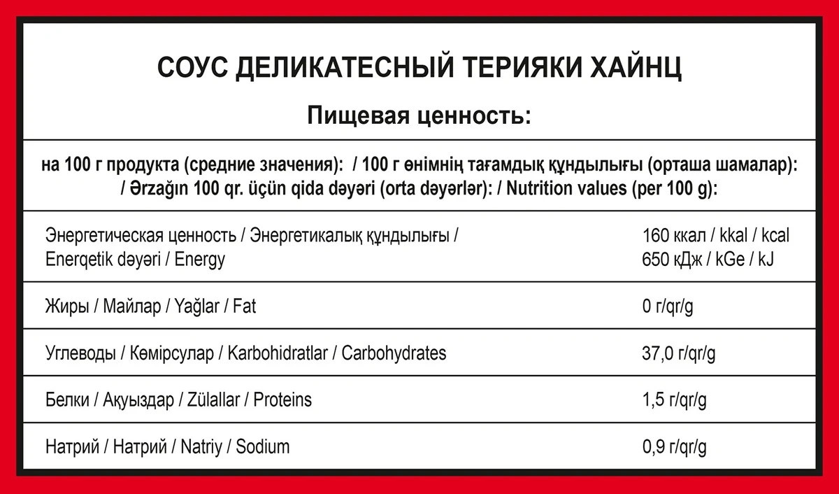 Соус терияки Heinz, 1кг используется для заправки готовых мясных и рыбных блюд и глазирования курицы. Он подходит для приготовления лапши и обжаренного риса, морепродуктов и овощей – стоит только добавить заправку в любое блюдо, и оно моментально приобретет непередаваемый азиатский колорит, тонкий аромат и пряный вкус. Продукт универсален, и способ его использования зависит только от фантазии повара. Он готовится из подготовленного соевого соуса с добавлением специй и пряностей.