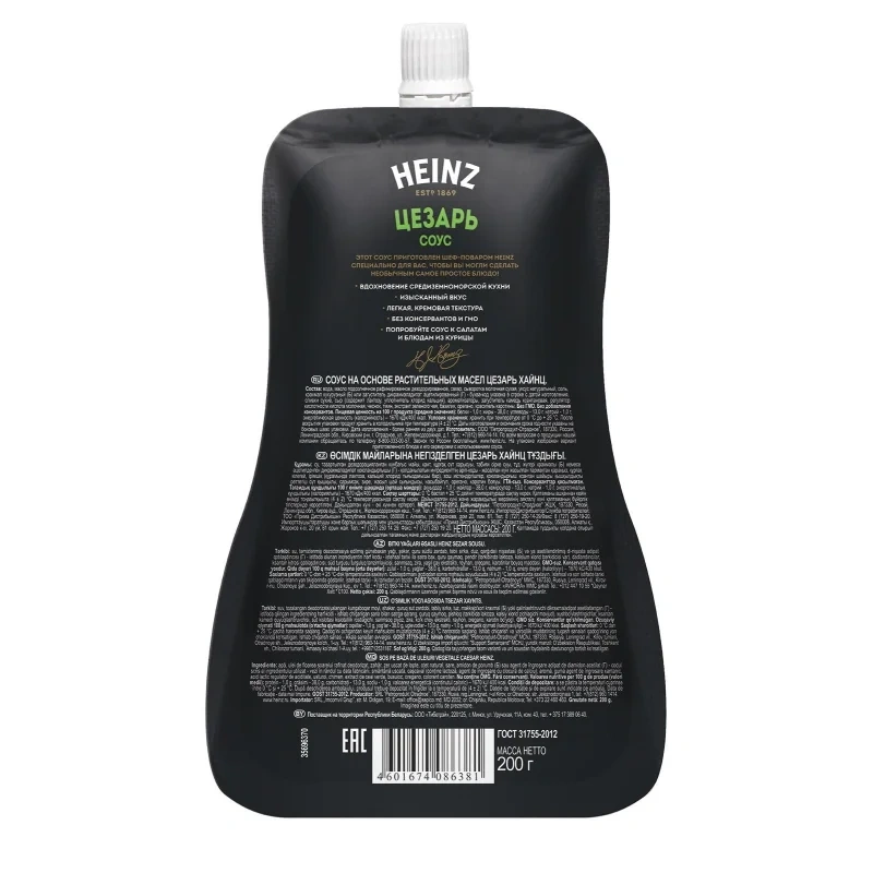 Соус HEINZ Цезарь — изысканный классический вкус и легкая текстура. С соусом Heinz Цезарь вы сможете приготовить шедевр итальянской кухни без лишних усилий.