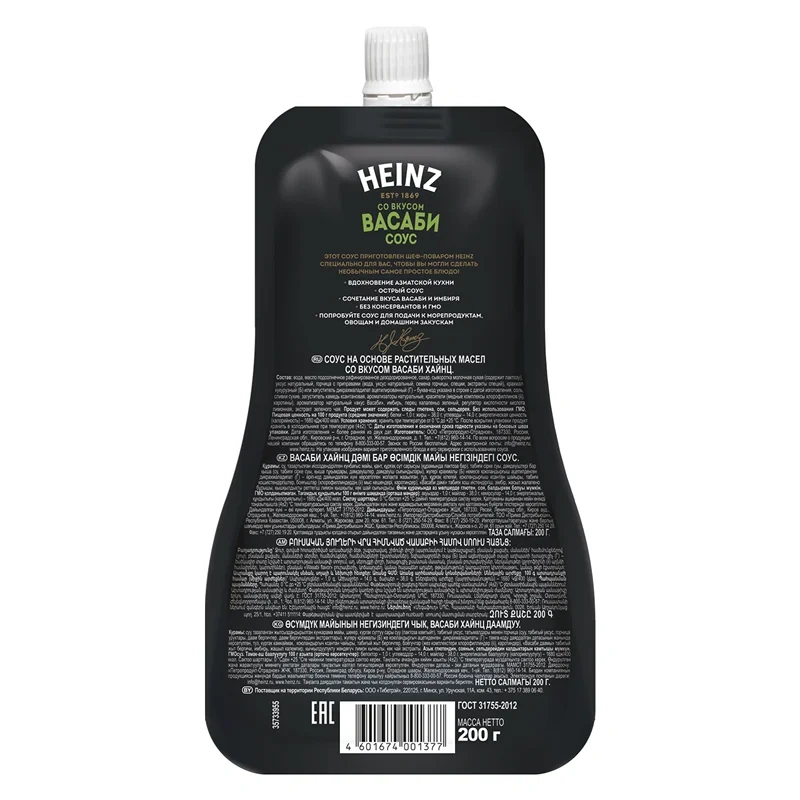 Соус Heinz Васаби, разработанный специально для блюд азиатской и паназиатской кухни, обладает характерным для приправы Васаби цветом и острыми нотами во вкусе. Соус Васаби идеально сочетается с морепродуктами, роллами и хрустящими снеками, приготовленными во фритюре. Многолетний опыт, экспертиза и любовь шеф-поваров Heinz к своему делу позволяют создавать исключительные и невероятно вкусные соусы для вашего кулинарного творчества. Это идеальный компаньон для азиатской кухни. Соус придаст необходимый акцент вкусу морепродуктов, овощам и домашним закускам. Представлен в удобной мягкой упаковке дой-пак по 200г с закручивающейся крышкой. Такая упаковка обеспечивает аккуратное употребление, надежно сохраняет вкус и свежесть соуса Heinz.