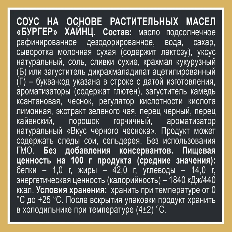 Бургерный соус - это гармоничное сочетание пикантных специй, томатов, майонезной основы и легкой сладко-горчичной нотки. Он подчеркивает вкус мяса, добавляет сочности и делает каждый укус насыщенным и сбалансированным. Идеален не только для бургеров, но и для сэндвичей, наггетсов, картофеля фри и гриль-блюд. Универсальный, густой и ароматный - он станет незаменимым соусом в вашей кухне.