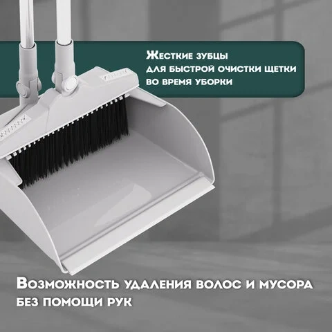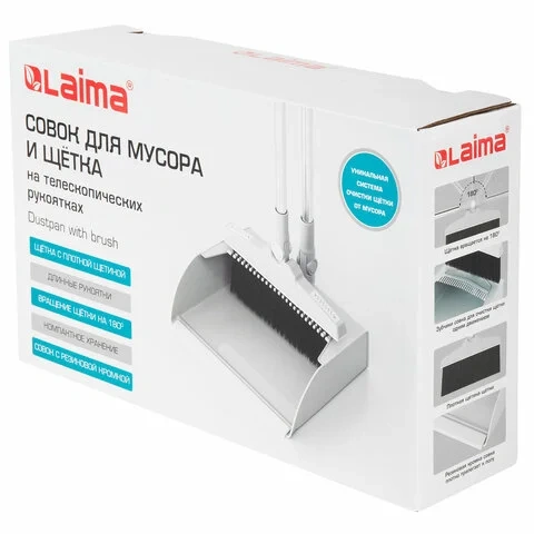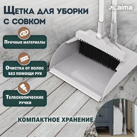 Совок со щеткой для пола Laima бело-серый, щётка на телескопических рукоятках 59-93 см