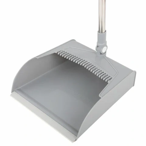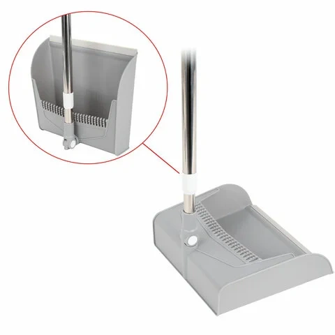 Совок для мусора может хранится в горизонтальном или вертикальном положении, что обеспечивает удобство хранения даже в самых маленьких помещениях. Вертикальное хранение становится возможным благодаря плоскому устойчивому дну совка, что особенно удобно в условиях экономии пространства. На совке также имеются пластиковые выступы для легкой очистки щетки от мусора и кромка из поливинилхлорида по краю, которая обеспечивает более плотное прилегание к полу и предотвращает просыпание мусора.