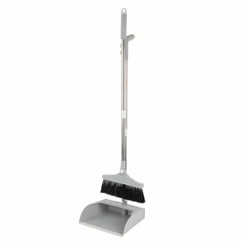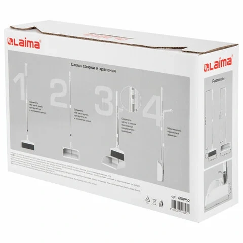 Комплект для уборки состоит из совка и щетки с длинными телескопическими рукоятками, которые крепятся друг к другу при помощи надежного пластикового замка, расположенного на рукоятке совка.