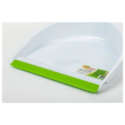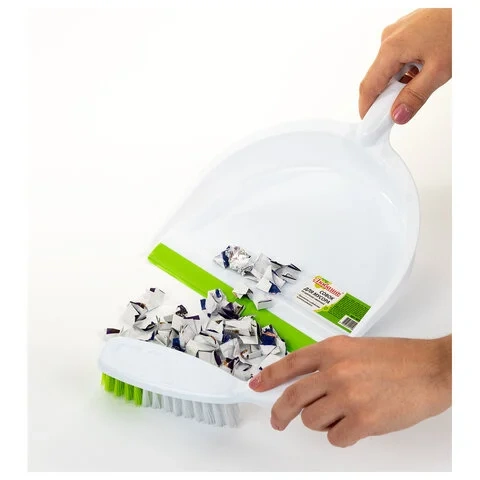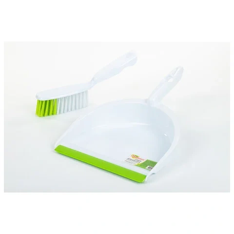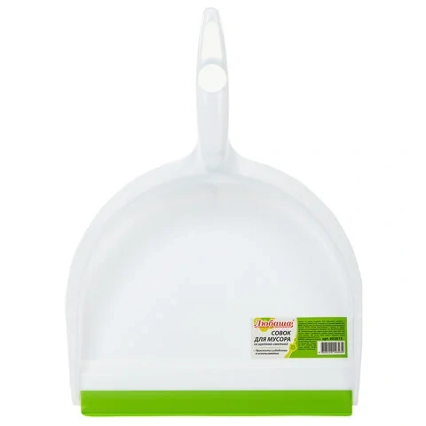 Совок со щеткой сметкой Любаша белый-зеленый, в комплекте с щеткой, пластик