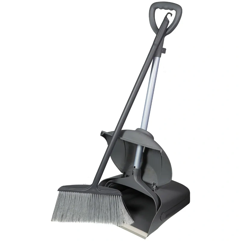 Совок со щеткой для пола Officeclean Professional с закрывающейся крышкой, в комплекте с щеткой, серый