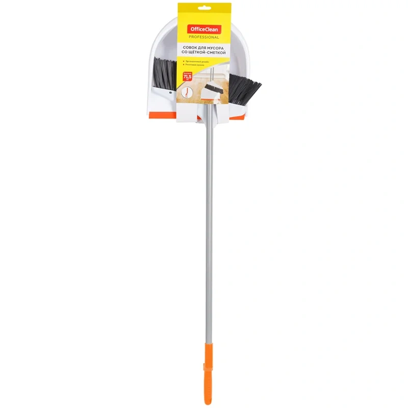 Совок для мусора OfficeClean Professional со щеткой-сметкой, метал. ручка 71,5см, пластик, рез. кром