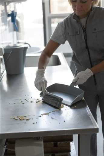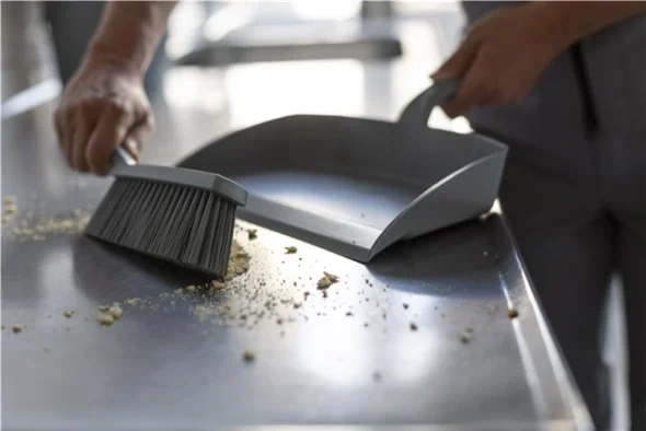 Совок имеет заостренный край для более эффективного заметания мусора.