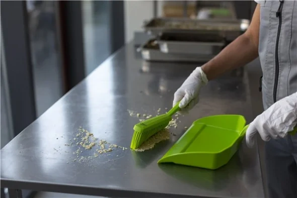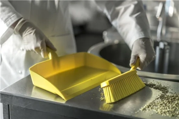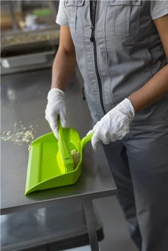 Совок имеет заостренный край для более эффективного заметания мусора.