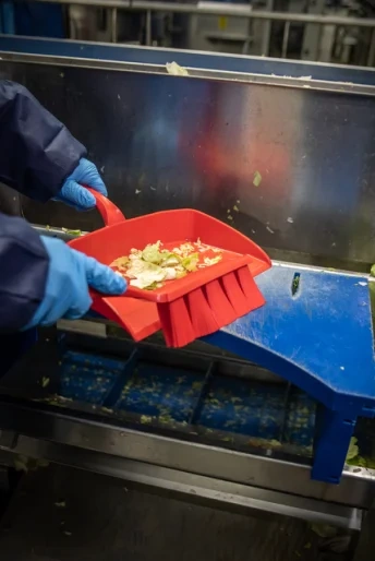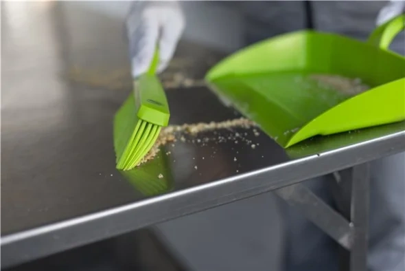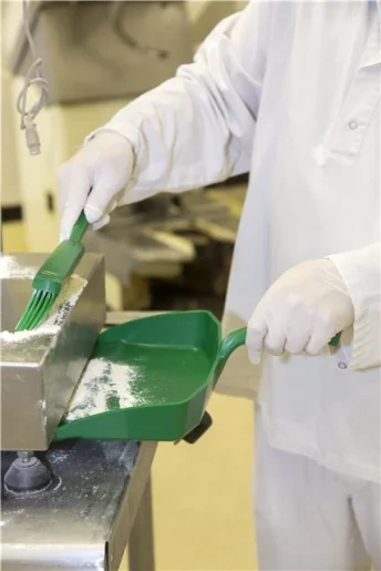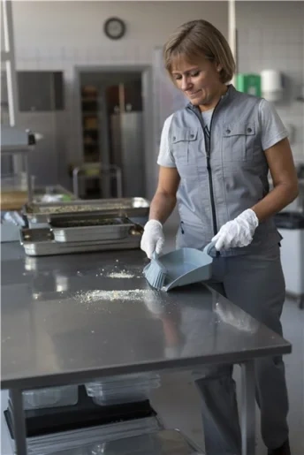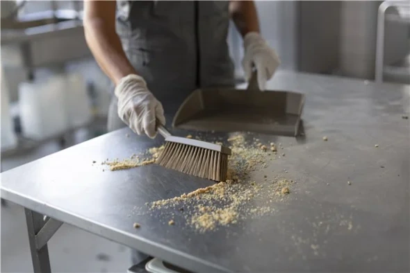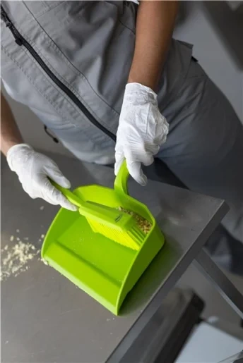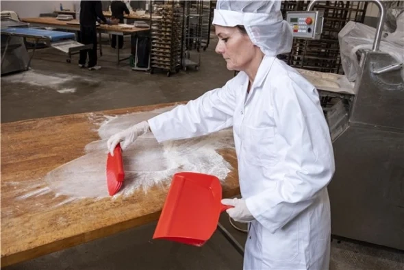 Совок имеет заостренный край для более эффективного заметания мусора.