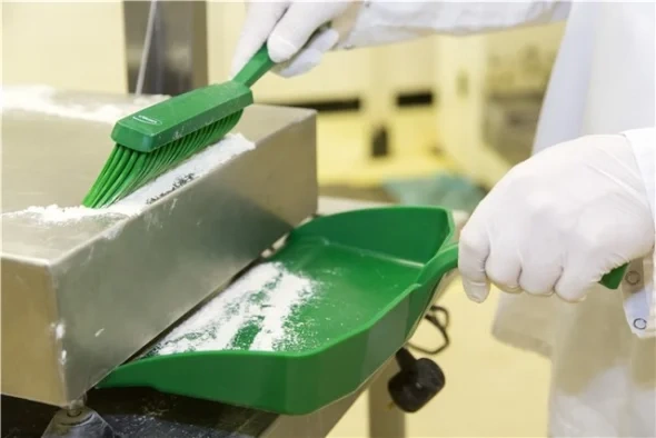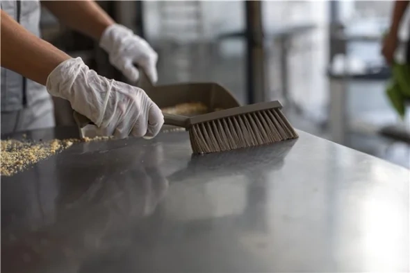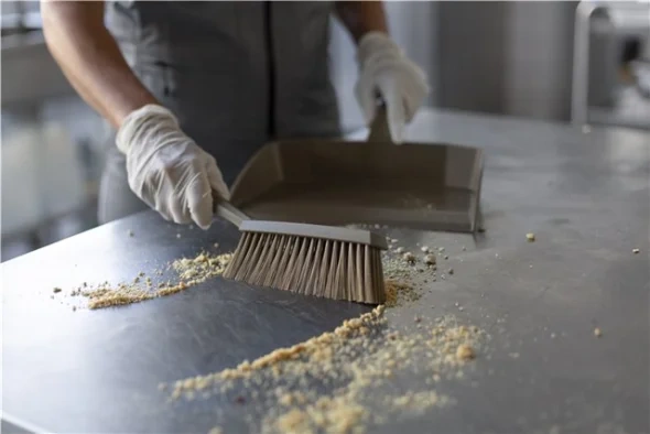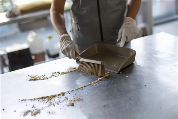 Совок имеет заостренный край для более эффективного заметания мусора.